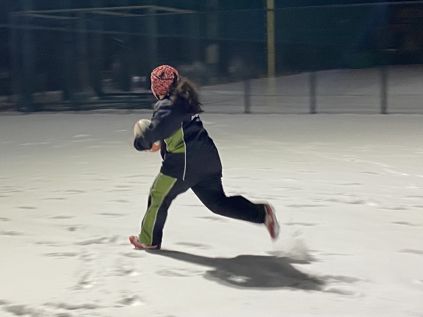 グラウンドは10cmも雪が積もっていなく、走りやすい状態でした。