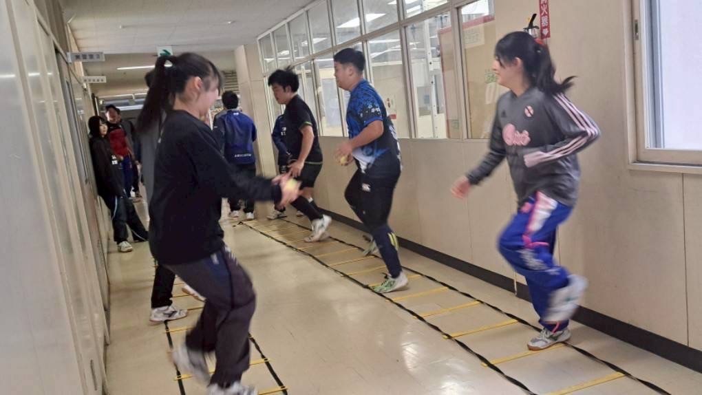 最初に二重課題ラダーを行いました。大きくアップコールをしており、盛り上げながらラダーを行うことができていました。
