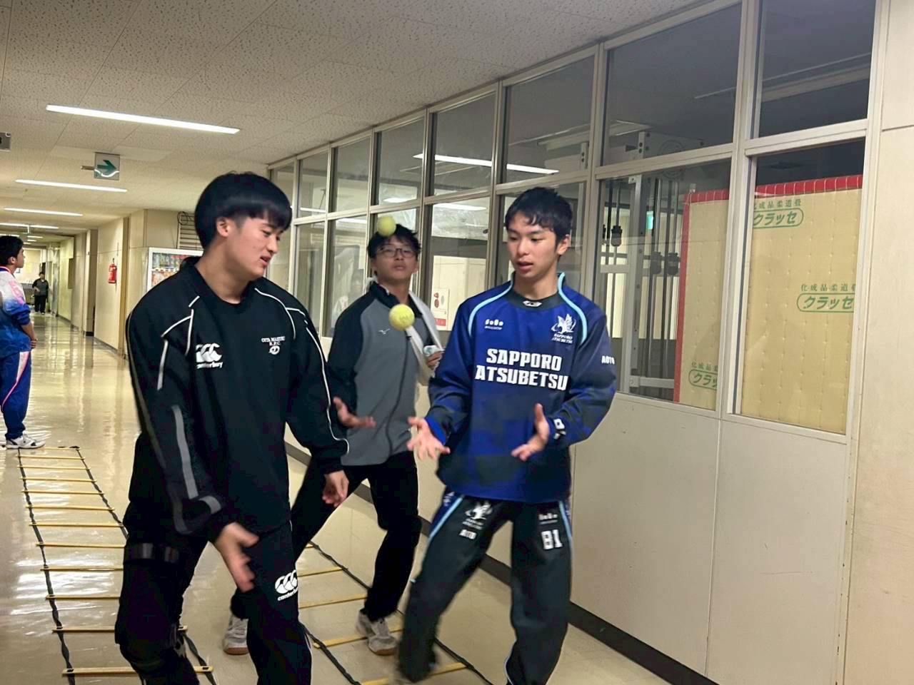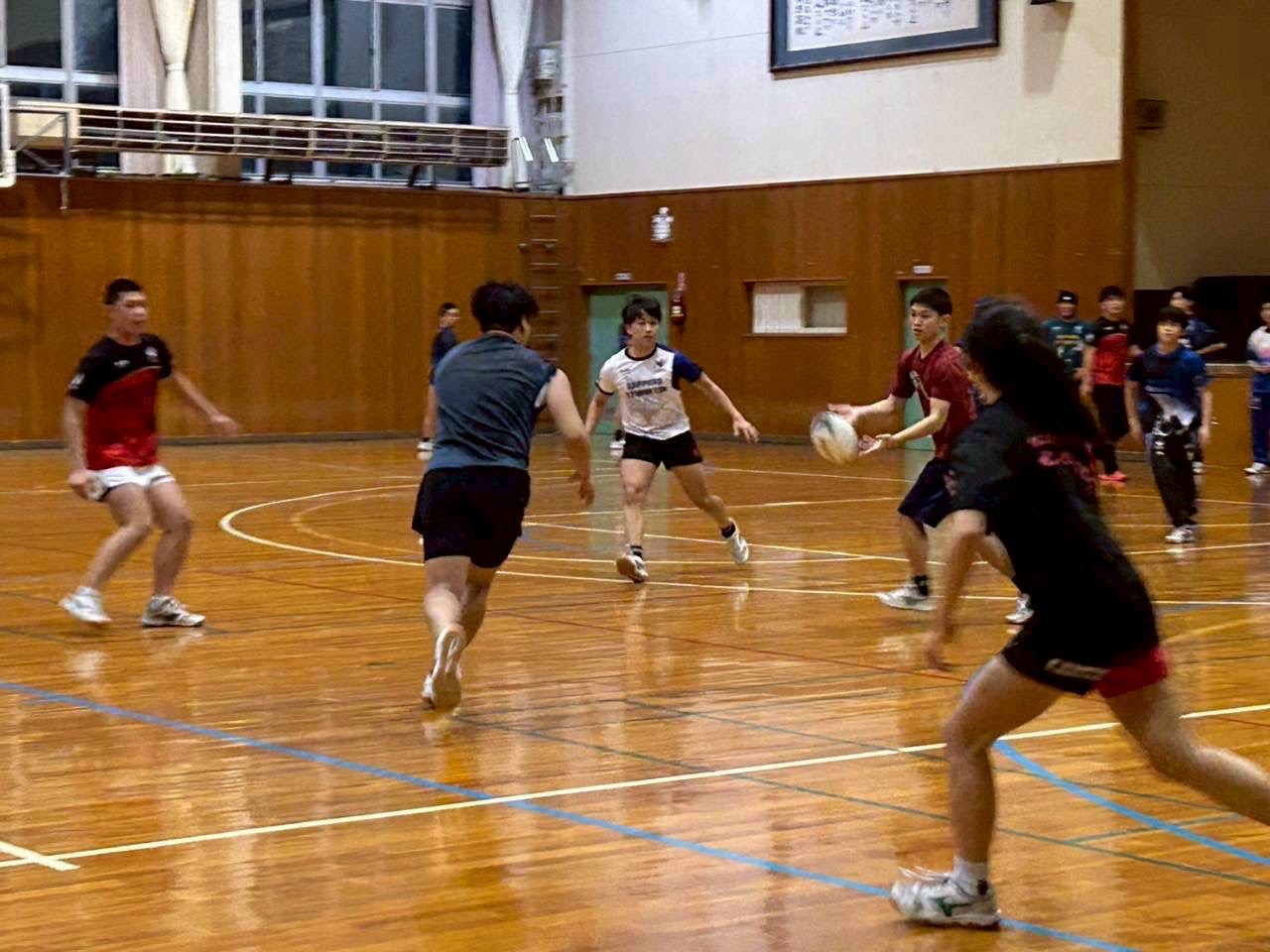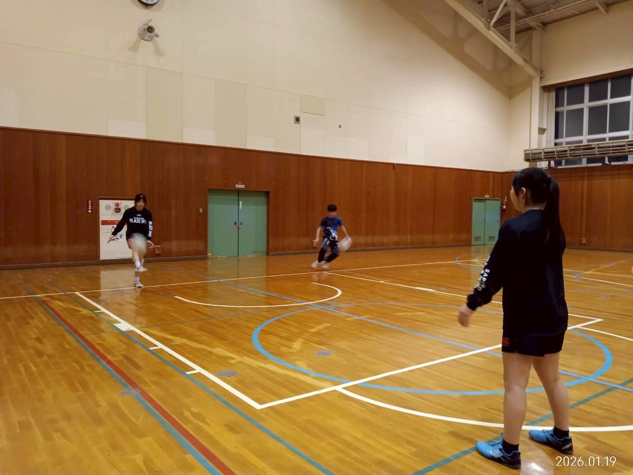 今日はビデオミーティングから体育館練習を行いました。3年福井さん、2年向井の友達の小倉くんが参加しました。