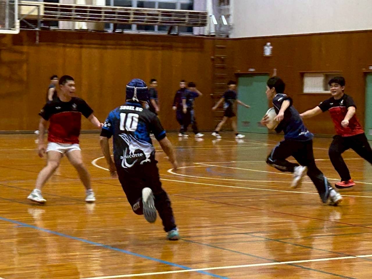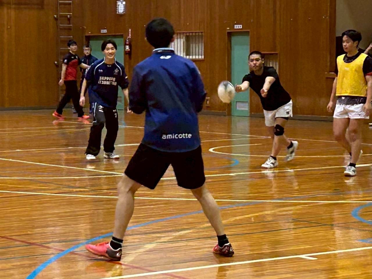 次に3対3、4対5を行いました。ハンドリングミスをしないように、相手が取りやすいパスを放ることを意識しましょう。また、体育館から溢れるような大きなコールをしていきましょう。