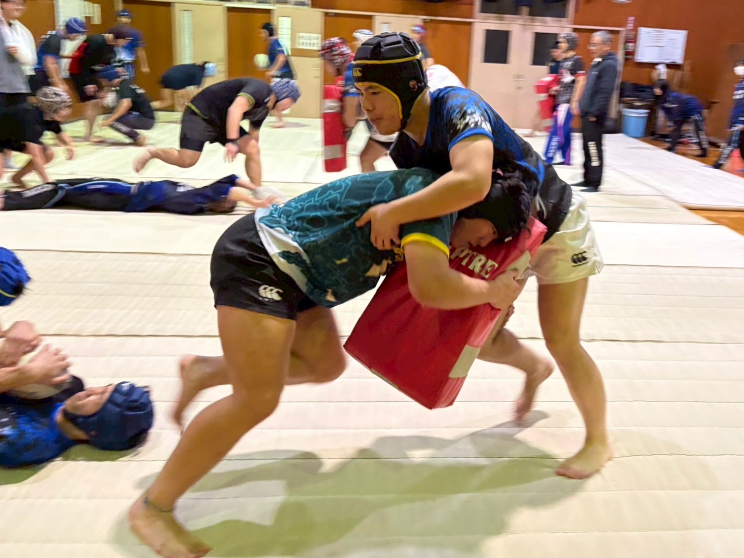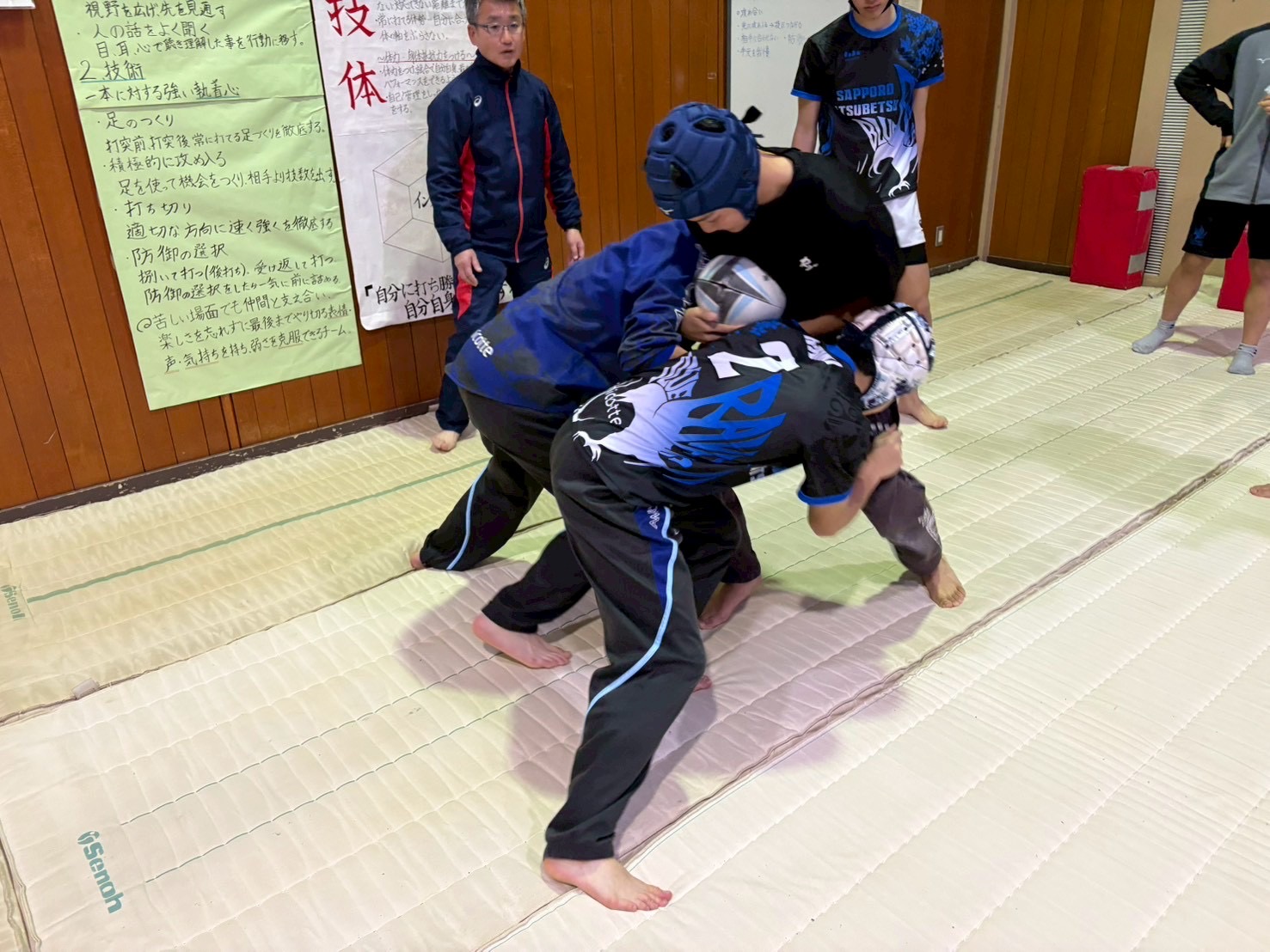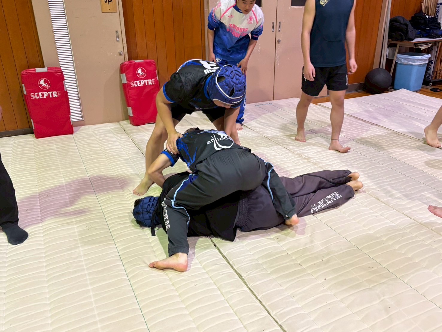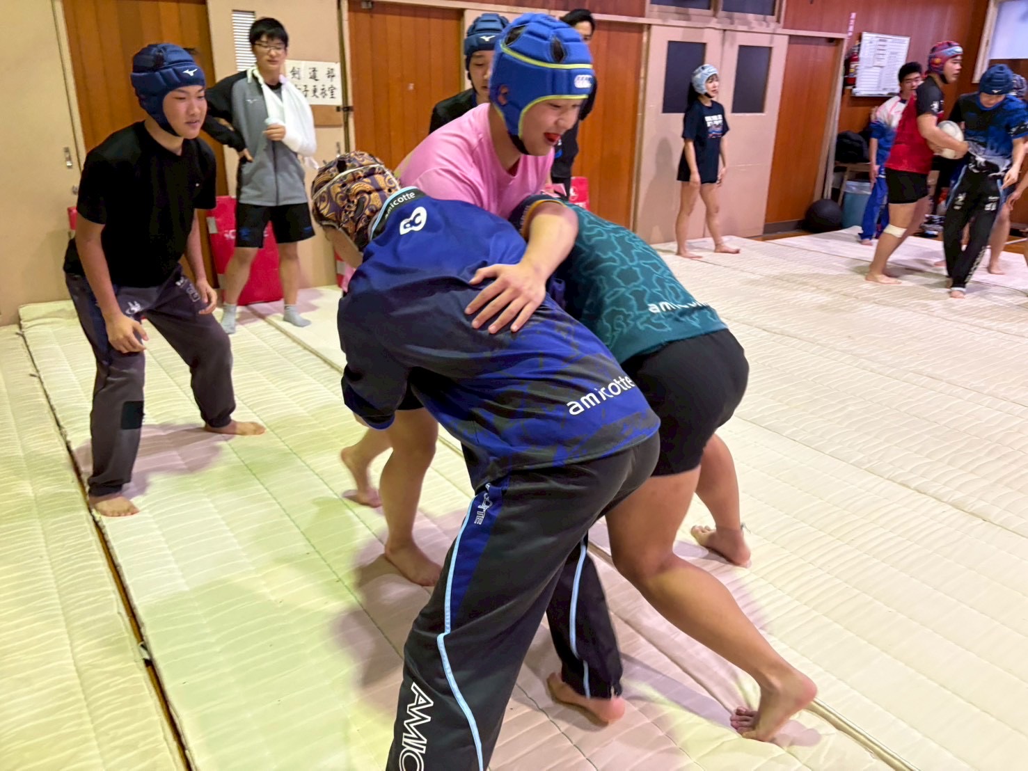 カウンターラックの練習では、超えた後に普段練習しているラッチングをして前で強く当たることが大切な点となりました。