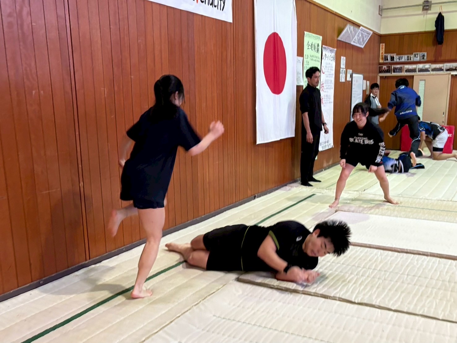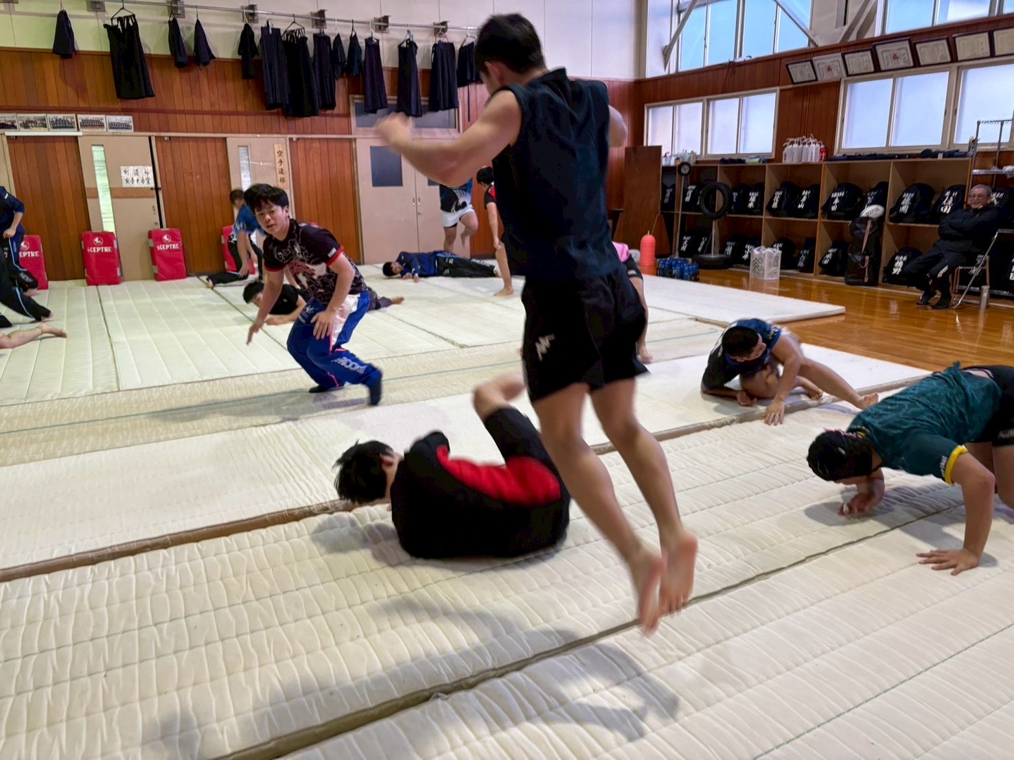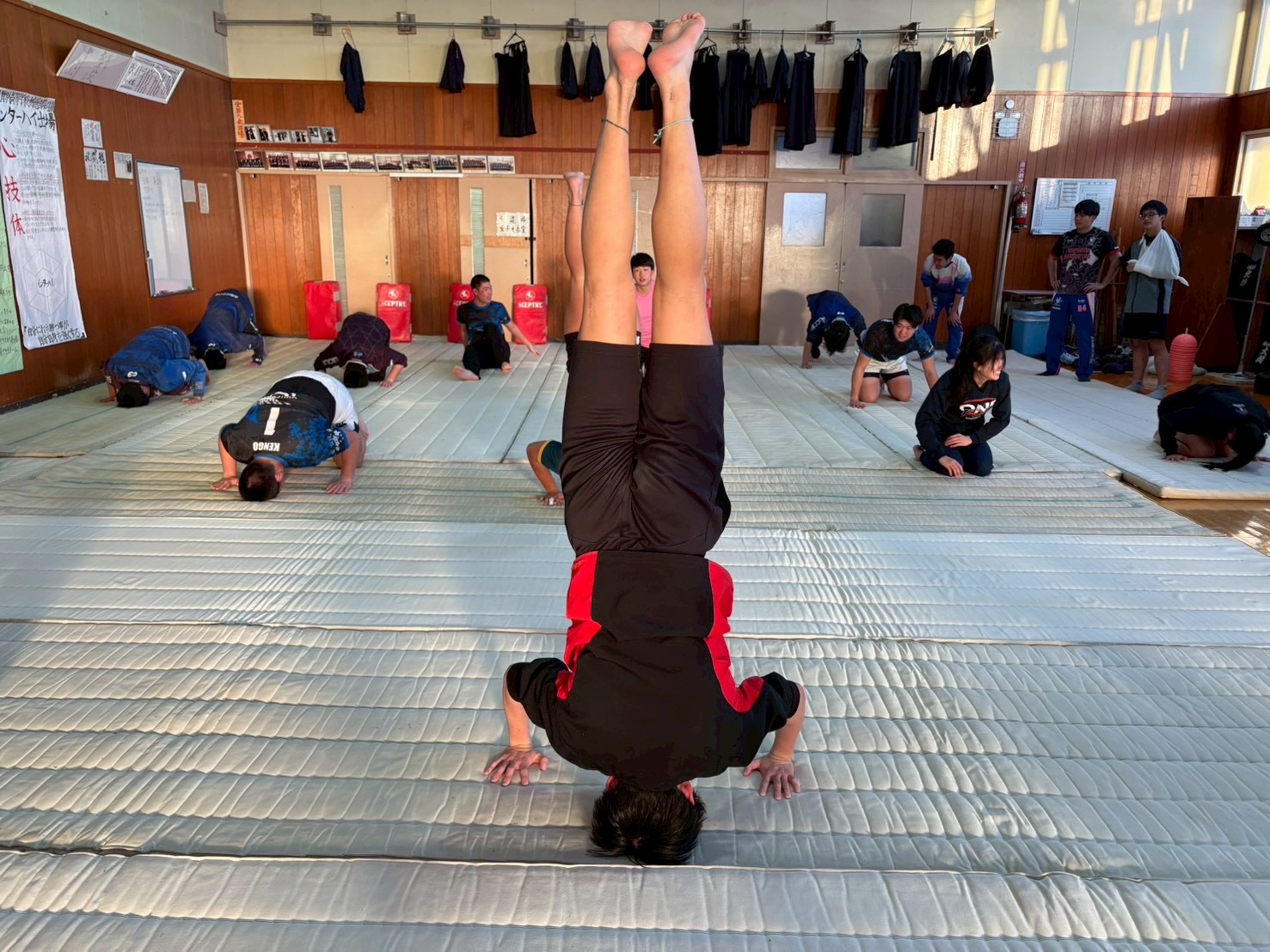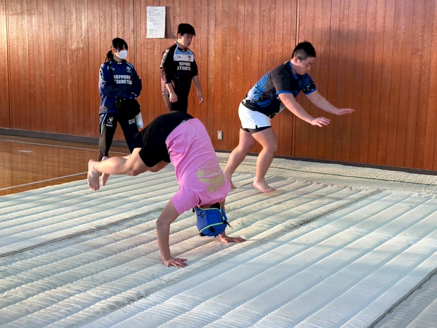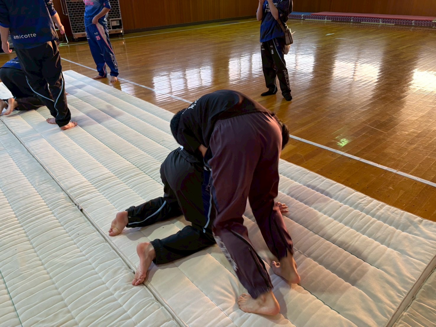 始めに器械運動を行いました。久しぶりの格技場練習となり、メニューによってはできない種目がある選手がいました。日頃から柔軟などで体を柔らかくしていきましょう。