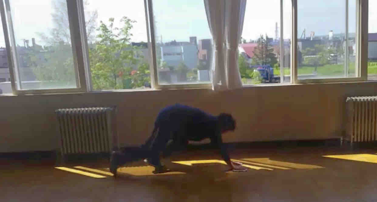 雑巾がけ、堀先生と私では、速さと低さが全然違いました!